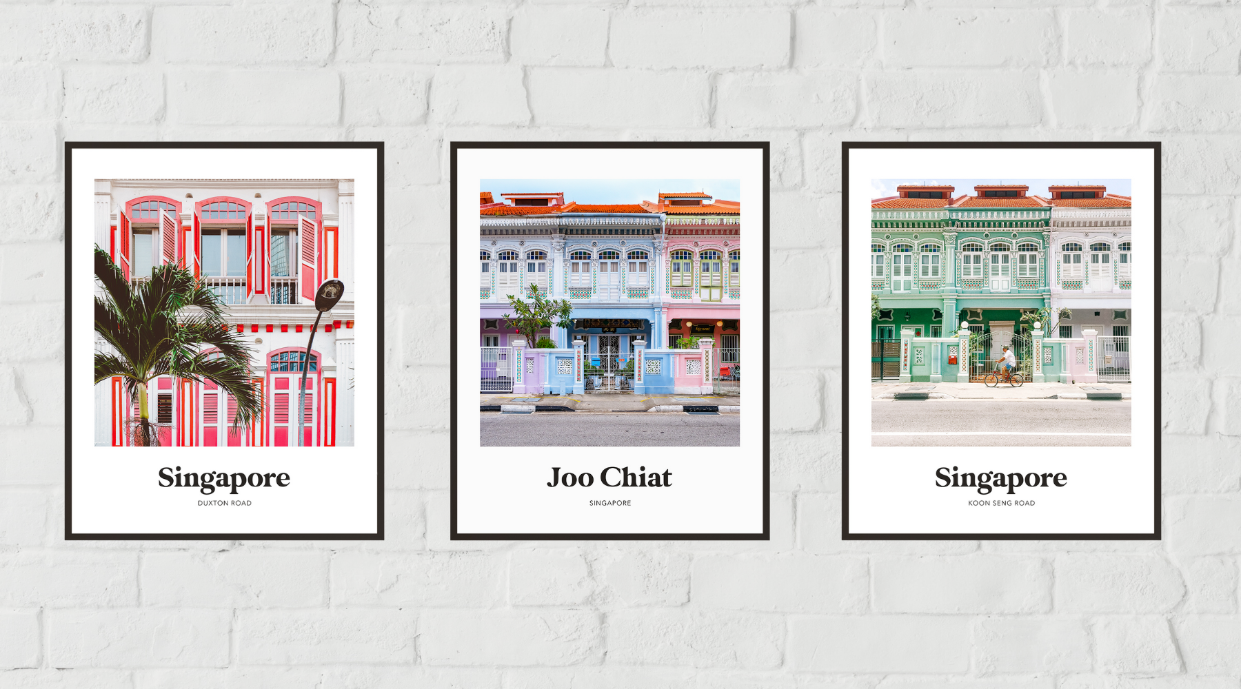 Shop beautiful Singapore shophouse prints or something colourful for your home, with fast local shipping.